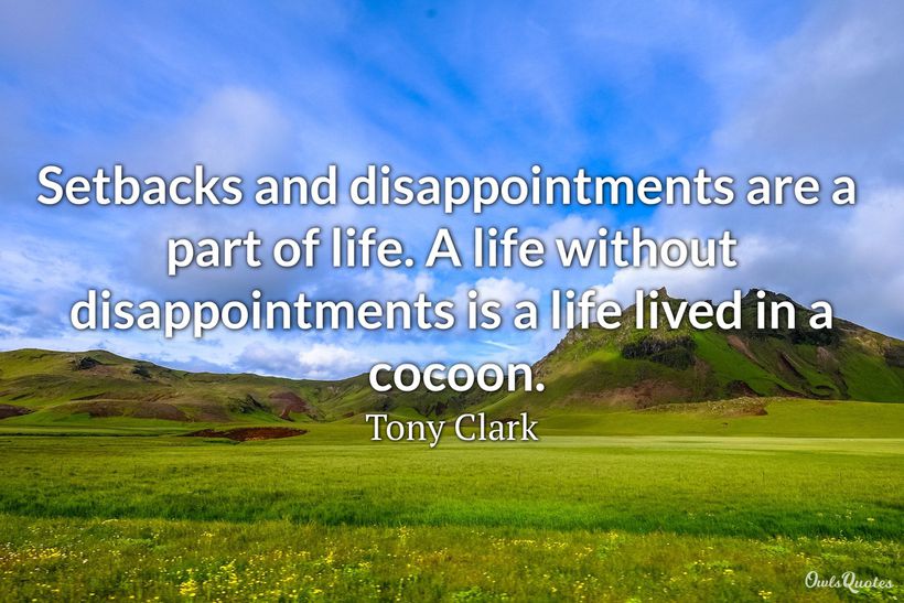 The best thing anyone can do after a series of disappointment is to learn from it and come out stronger. For that to happen one must sit back and analyze what led to the disappointments and what can be done differently. A review of some of the great quotes about disappointment will help you see the hidden lesson in each disappointment, and in effect propel you to greatness in the future.